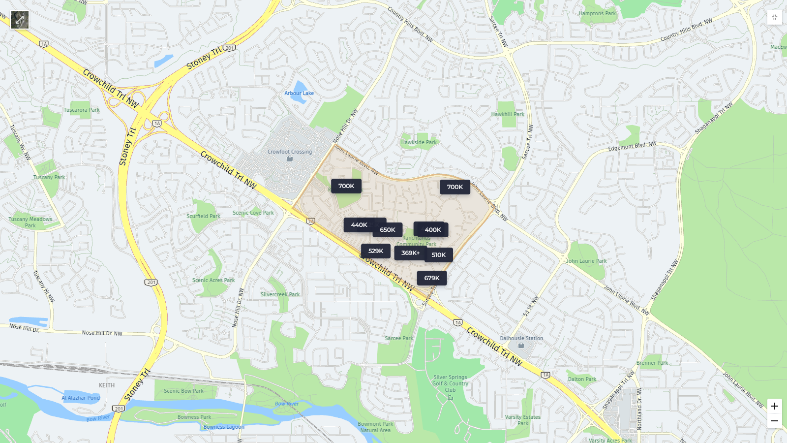 Strategically located with easy access to major routes like Crowchild Trail and Stoney Trail, Ranchlands offers quick commutes to downtown Calgary and various other city locales. The nearby Crowfoot LRT station further enhances connectivity, facilitating travel across the city for work or leisure.